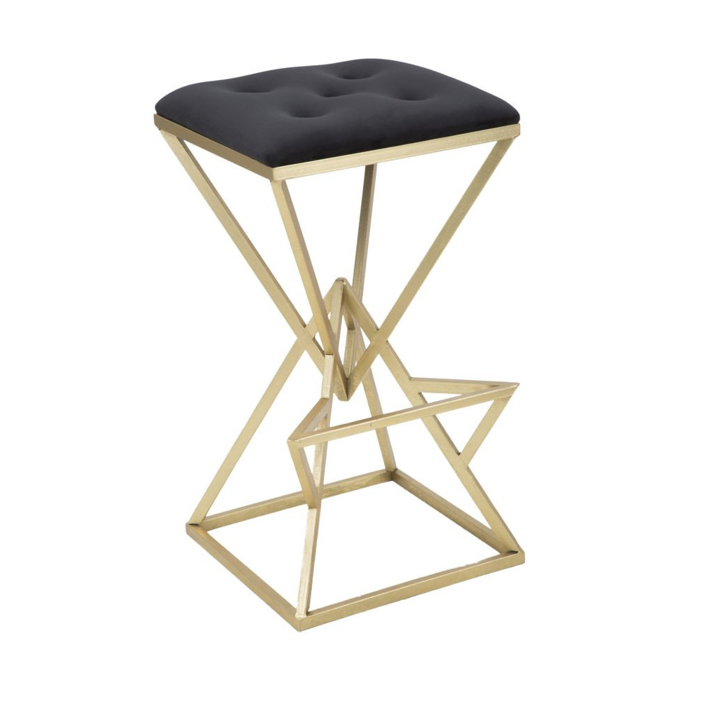 Sgabello bar in metallo dorato e tessuto dalle linee geometriche ed ipnotiche. Elementi d'arredo che ricordano i lussuosi ambienti dell'Hotel Plaza di New York. Ricrea l'atmosfera magica del Grande Gatsby nel tuo interior