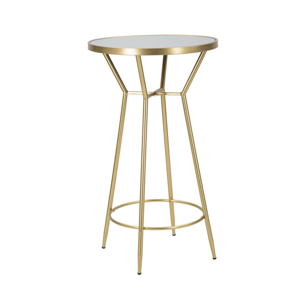 Semplice tavolo da bar rotondo in metallo dorato e piano in vetro a specchio. Design essenziale, lineare e pulito per donare con semplicità un tocco glam di classe all'angolo bar della tua casa.