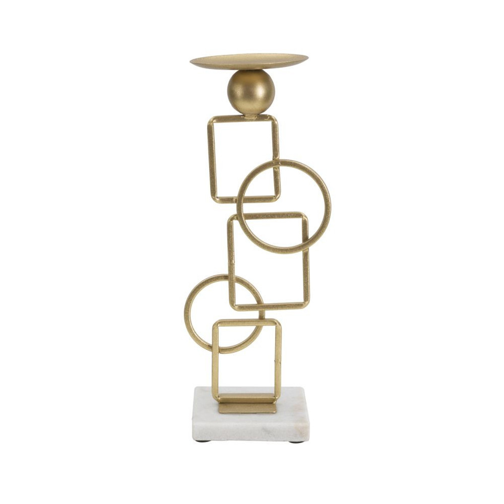 Elegante portacandele in metallo dorato con base in marmo. Il design geometrico dona in tocco di classe ad ogni ambiente.
