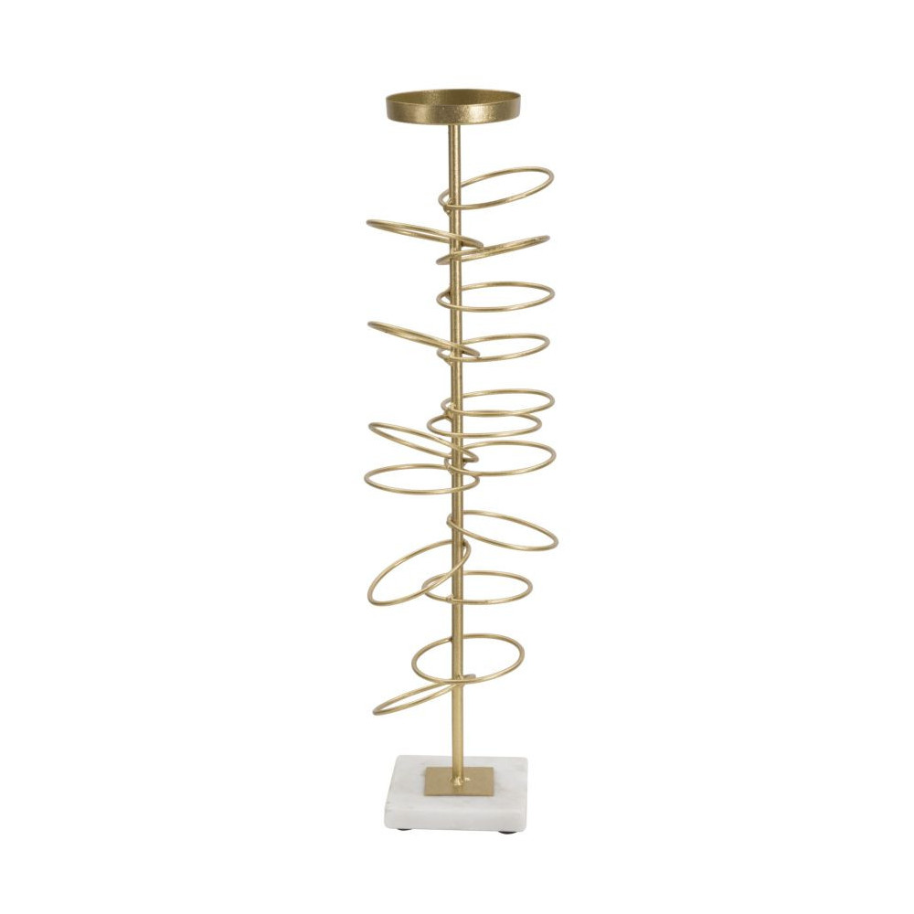 Elegante portacandele in metallo dorato con base in marmo. Il design geometrico dona in tocco di classe ad ogni ambiente.