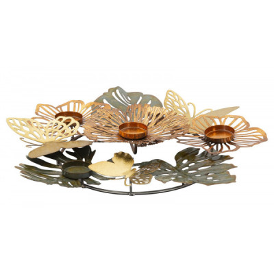Portacandele rotondo composto da foglie e fiori multicolori. Può contenere 4 candele