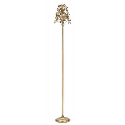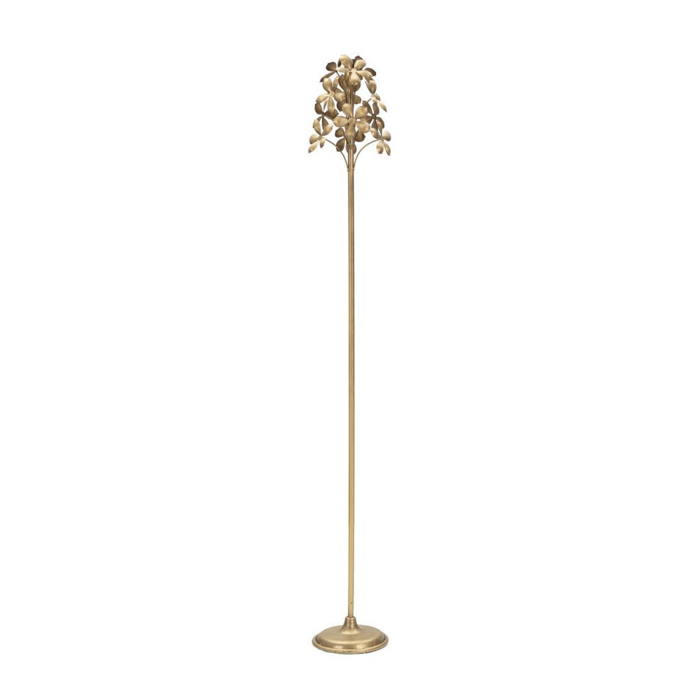 Portacandele in metallo dorato con eleganti decorazioni floreali.
