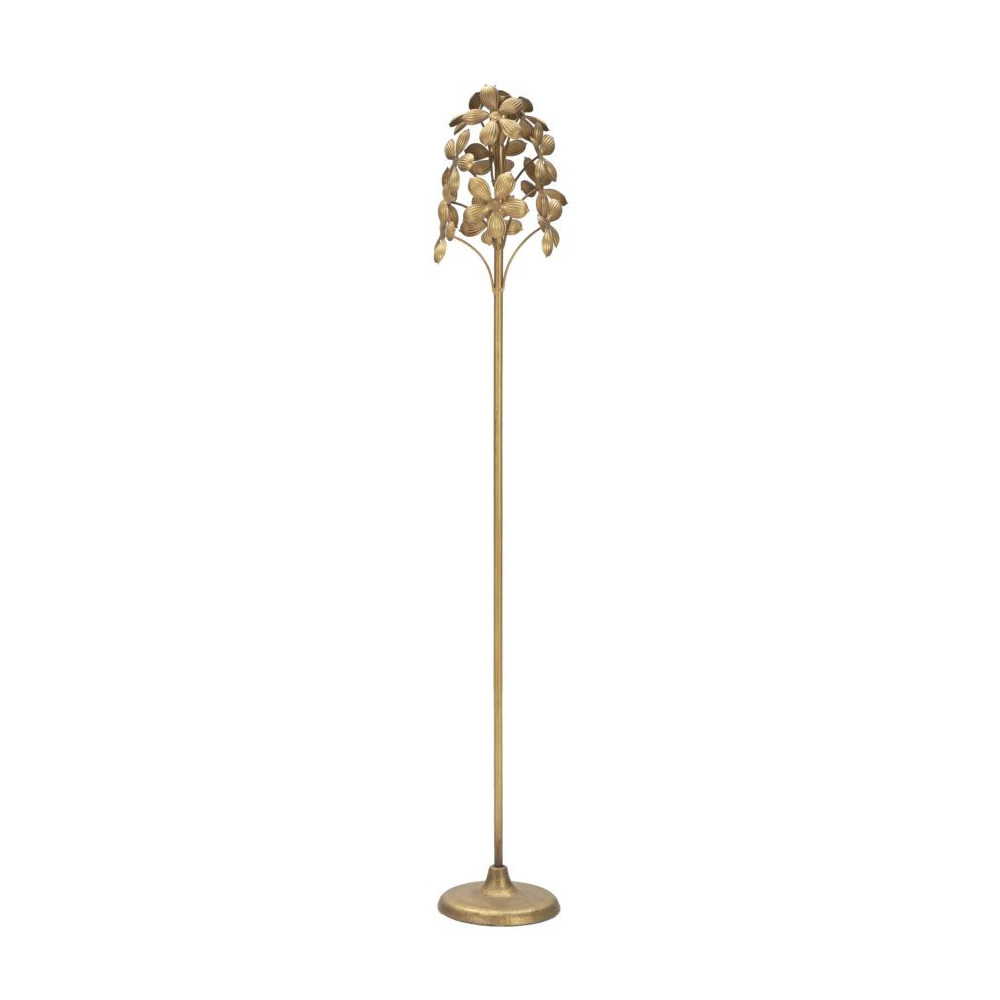 Portacandele in metallo dorato con eleganti decorazioni floreali.