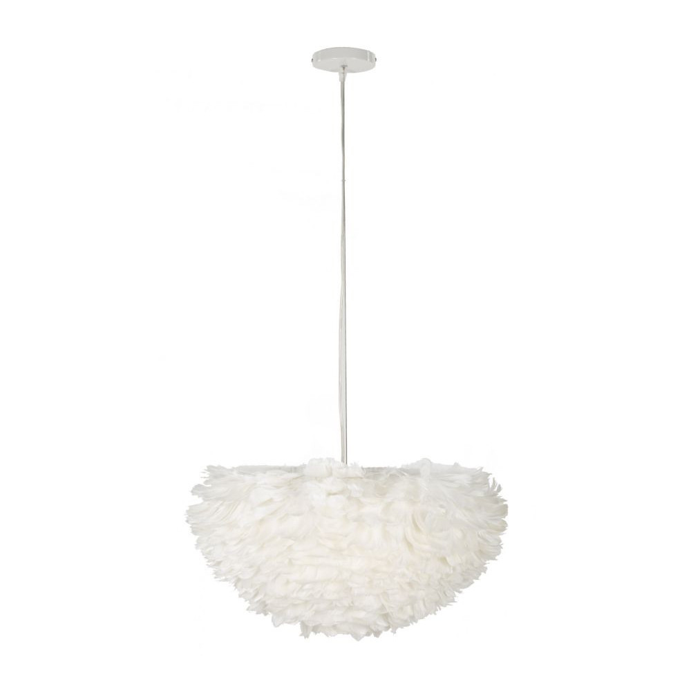 Semplice lampadario composto da un insieme di piume sintetiche.