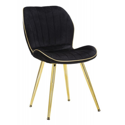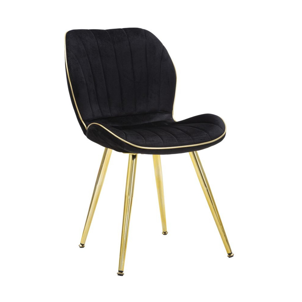 Coppia di sedie imbottite in velluto sintetico nero complete di comodo schienale. Le rifiniture dorate donano un tocco di luce e lo rendono un perfetto connubio tra eleganza e comodità.