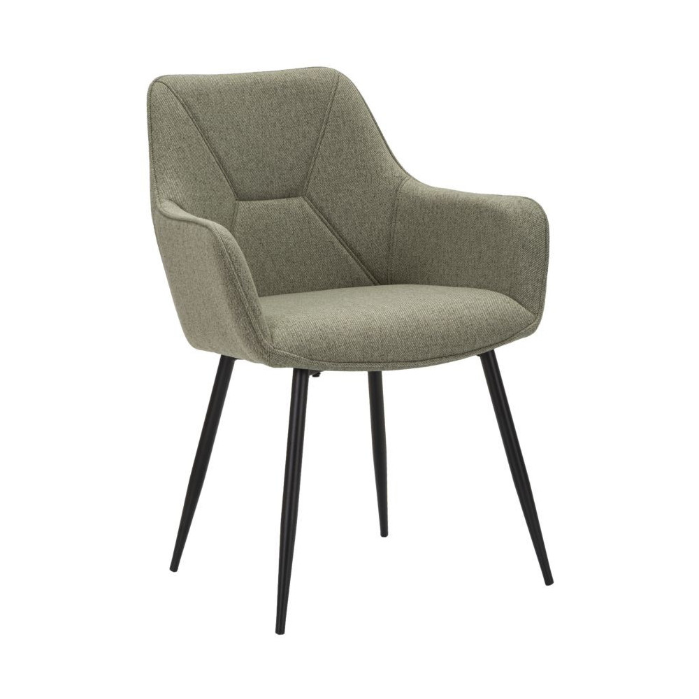 Set di 2 sedie in tessuto imbottito complete di pratico bracciolo. Il tessuto insieme alle gambe in metallo nero donano un tocco di classe ad ogni ambiente.