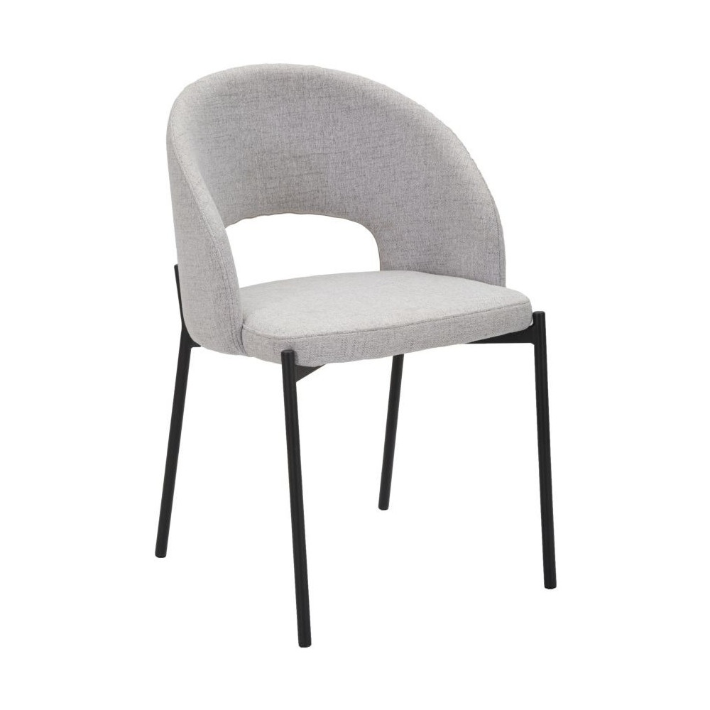 Set di 2 sedie in tessuto imbottito dalle linee che rimandano al design anni 70. Il tessuto insieme alle gambe in metallo nero donano un tocco di classe ad ogni ambiente.
