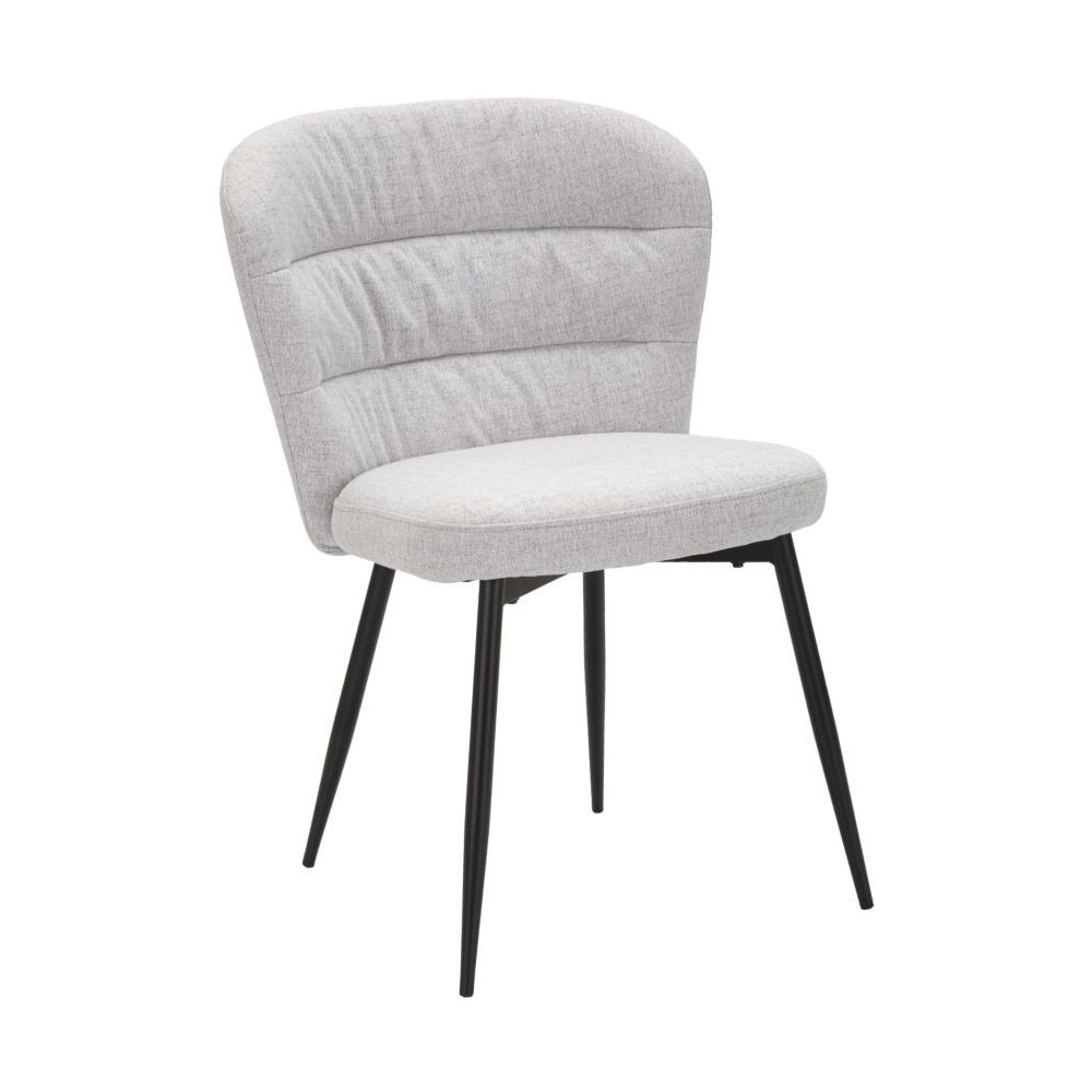 Set di 2 sedie in tessuto imbottito dalle linee che rimandano al design anni 70. Il tessuto insieme alle gambe in metallo nero donano un tocco di classe ad ogni ambiente.