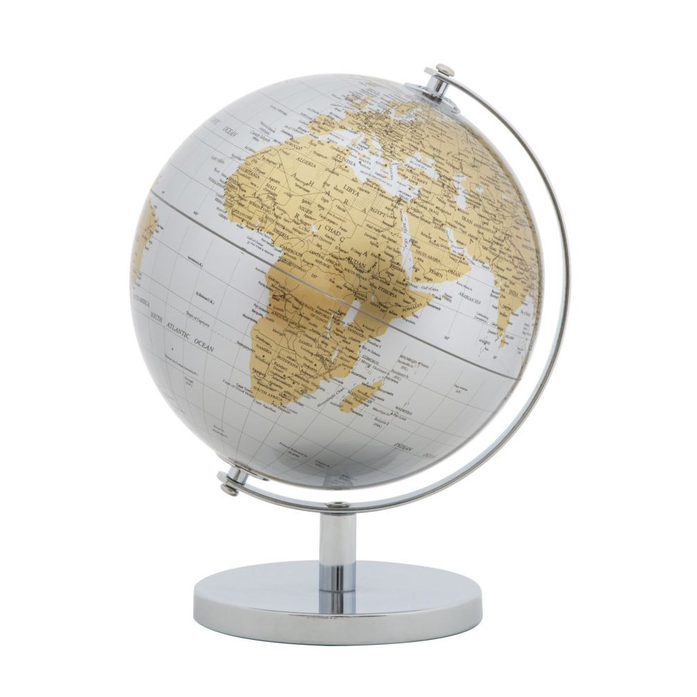 Mappamondo decorativo in materiale plastico con base in metallo. Mostra la tua anima da vero globe trotter grazie a mappamondi sofisticati e glam.