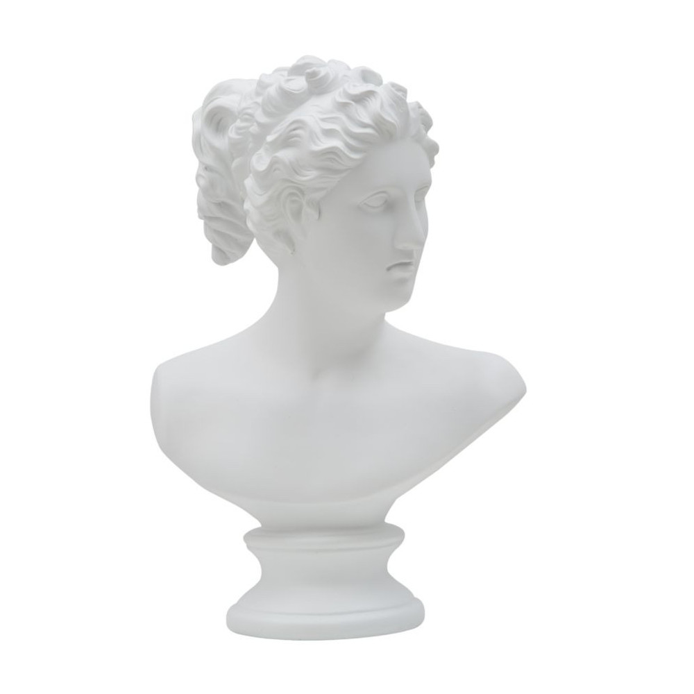 Statuetta di testa di donna in resina ispirata alla scultura classica. Perfetta per donare un tocco d'arte ad ogni stanza. Il colore bianco si sposa alla perfezione con ogni tipologia di arredamento.
