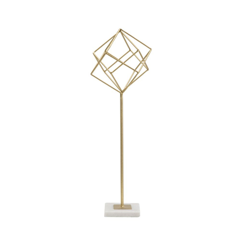 Elegante scultura in metallo dorato con base in marmo dal design geometrico ed accattivante.