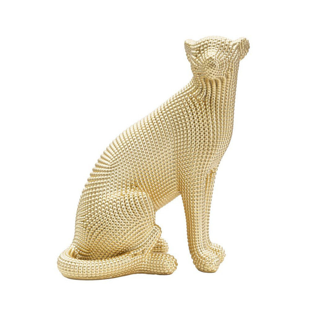 Statua di leopardo seduto dal particolare design. La lucentezza dell'oro dona un tocco di classe ad ogni ambiente.