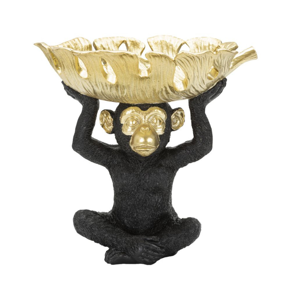 Simpatica statuetta a forma di scimmia che sostiene una foglia dorata che può essere utilizzata come porta oggetti.