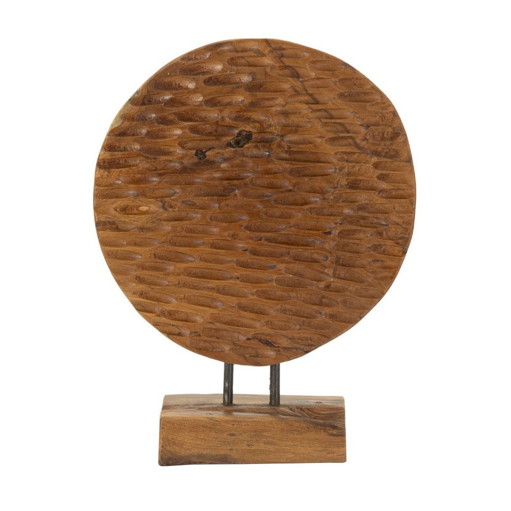 Scultura unica in teak riciclato, che combina la forma di una moneta con superfici irregolari. Ogni intaglio riflette la maestria artigianale e la bellezza dell'imperfezione, rendendo questo pezzo un simbolo di autenticità e armonia.
