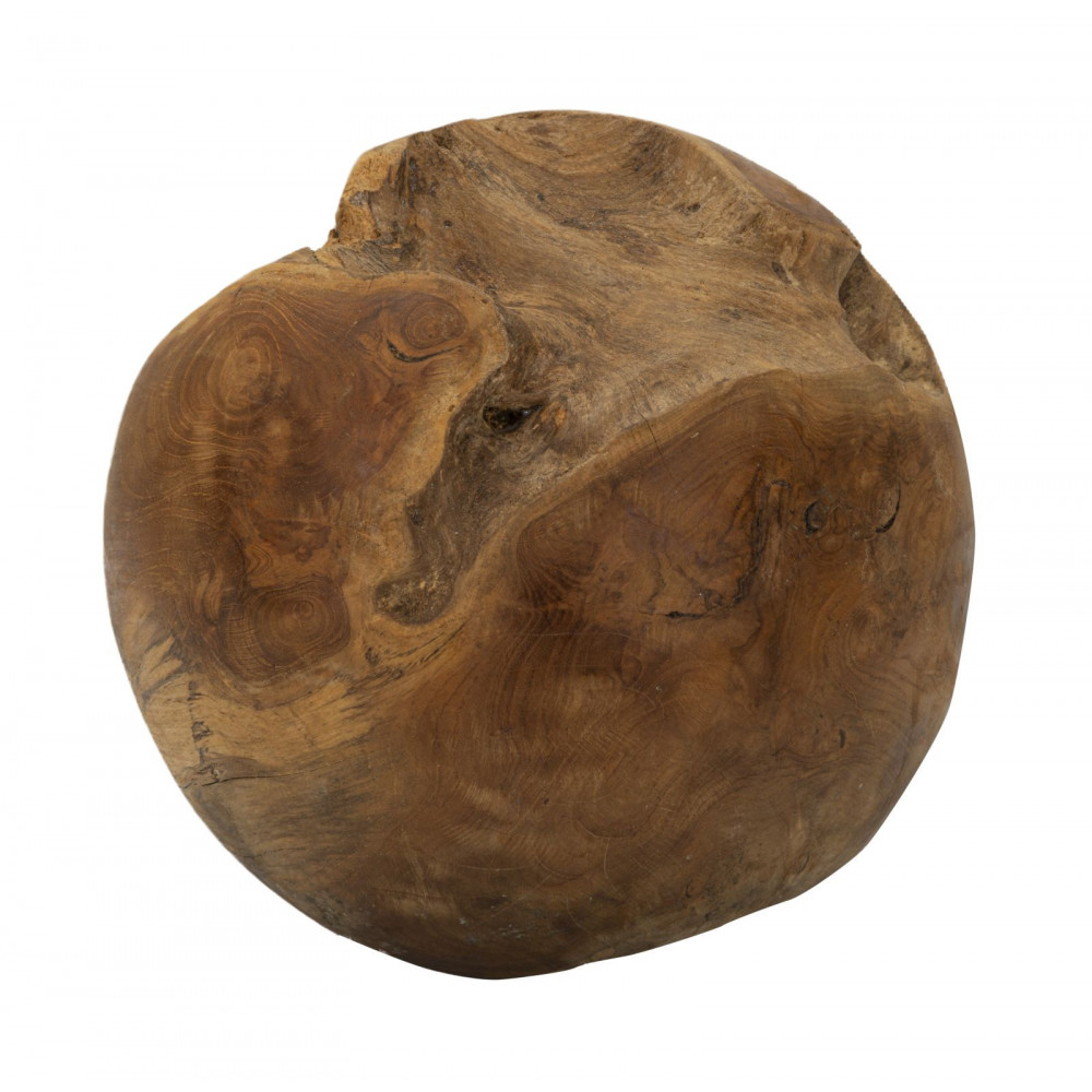 Sfera in teak riciclato, realizzata a mano, è un pezzo unico che unisce eleganza e sostenibilità. Le sue venature calde e la superficie levigata evocano una sensazione di serenità e raffinatezza.