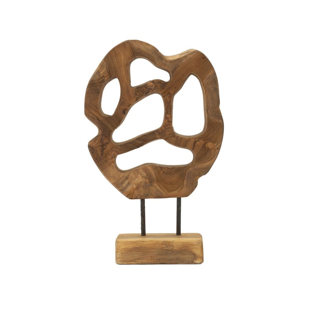 Scultura in teak riciclato affascina con le sue forme tondeggianti e le eleganti aperture sinuose. Ogni curva evoca un senso di leggerezza e raffinatezza, mentre il calore del legno riciclato conferisce unicità e profondità emotiva al pezzo.