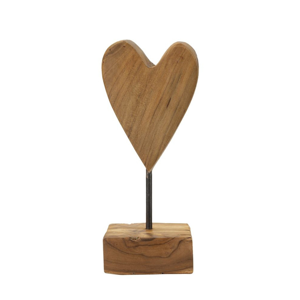Scultura a forma di cuore, realizzata a mano in teak riciclato, emana una calda intimità e un'energia rinnovata. La sua eleganza rustica e le venature naturali del legno evocano sentimenti di amore e autenticità.