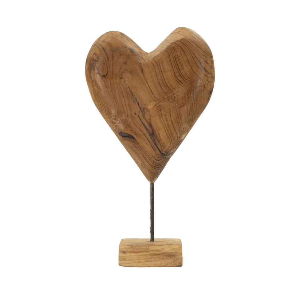 Scultura a forma di cuore, realizzata a mano in teak riciclato, emana una calda intimità e un'energia rinnovata. La sua eleganza rustica e le venature naturali del legno evocano sentimenti di amore e autenticità.
