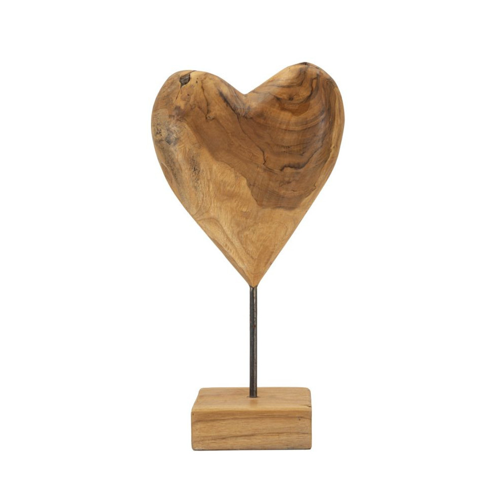 Scultura a forma di cuore, realizzata a mano in teak riciclato, emana una calda intimità e un'energia rinnovata. La sua eleganza rustica e le venature naturali del legno evocano sentimenti di amore e autenticità.