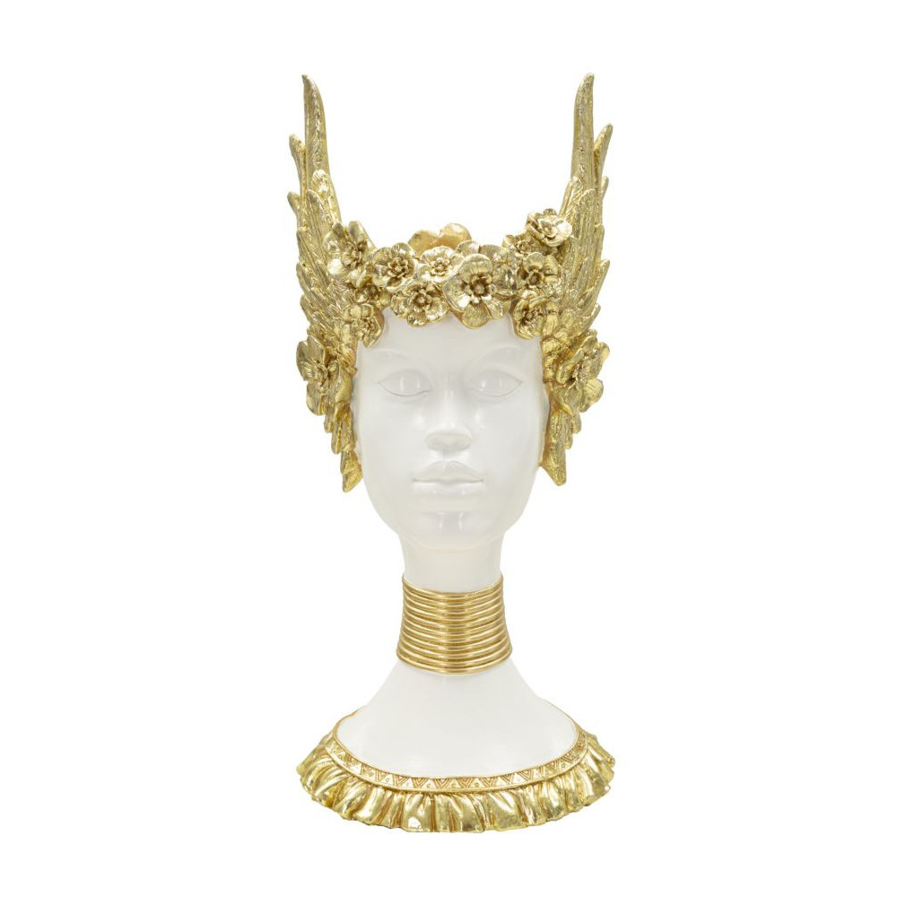 Scultura di busto di donna che richiama l'arte classica elegantemente decorata con ali dorate.