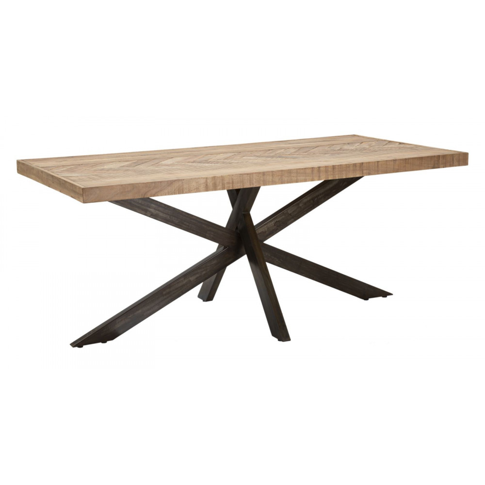 Tavolo da pranzo in legno con gambe in metallo dal particolare design a incastro. Lo stile industriale unito alla all'eleganza del design dona un tocco di classe e ricercatezza.
