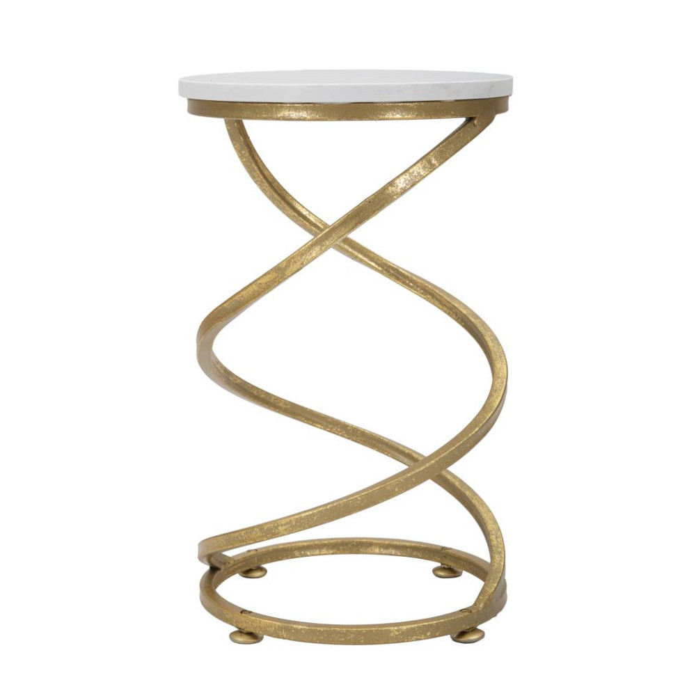 Elegante tavolinetto in metallo dorato e piano in marmo bianco. Le linee dolci e sinuose creano il giusto equilibrio tra classico e glam contemporaneo.
