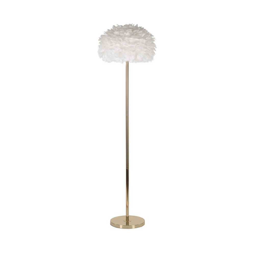 Piantana in metallo dorato dal design lineare completa di elegante paralume composto da piume sintetiche.