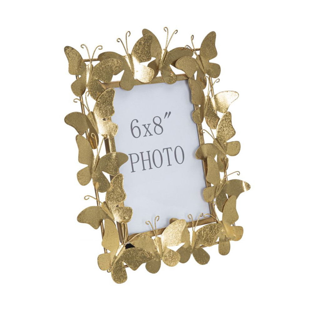 Elegante cornice portafoto in metallo dorato impreziosita da farfalle. Un tocco glam che dona luminosità ad ogni stanza.