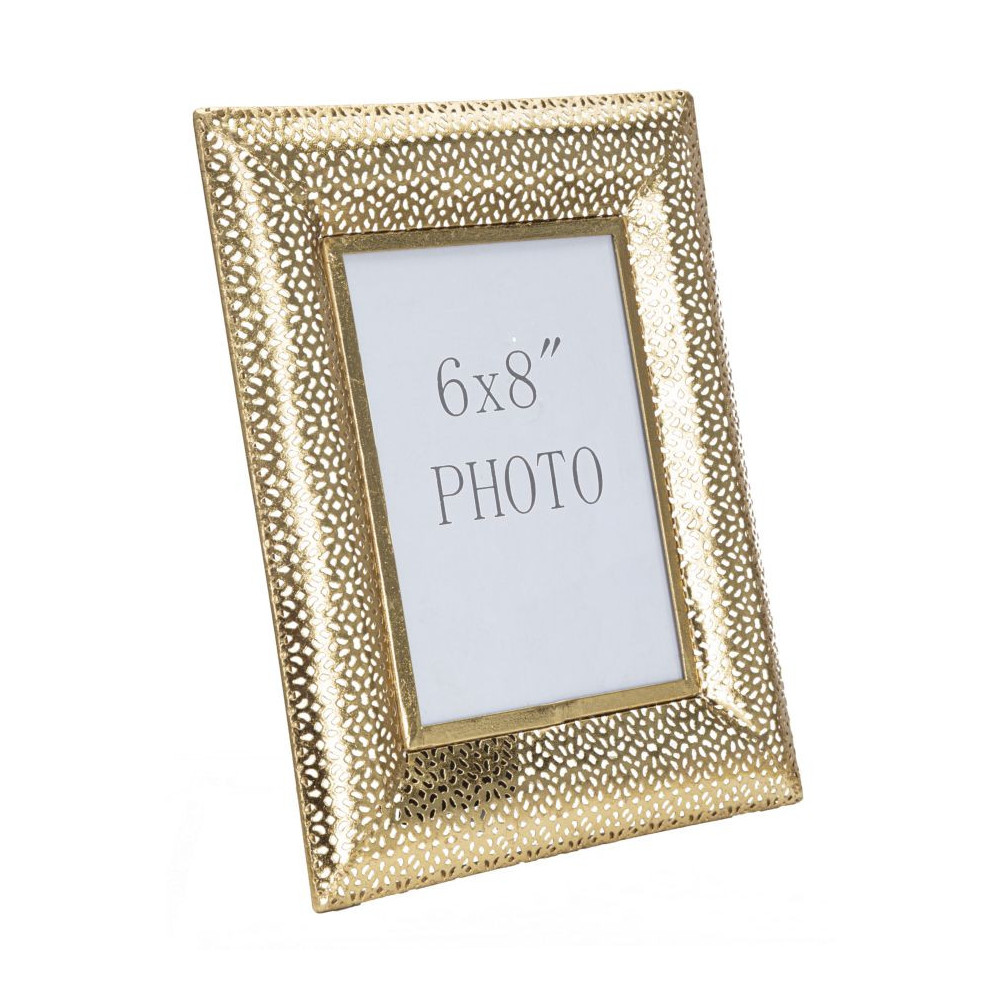 Elegante cornice portafoto in metallo dorato impreziosità da eleganti intagli. Un tocco glam che dona luminosità ad ogni stanza.