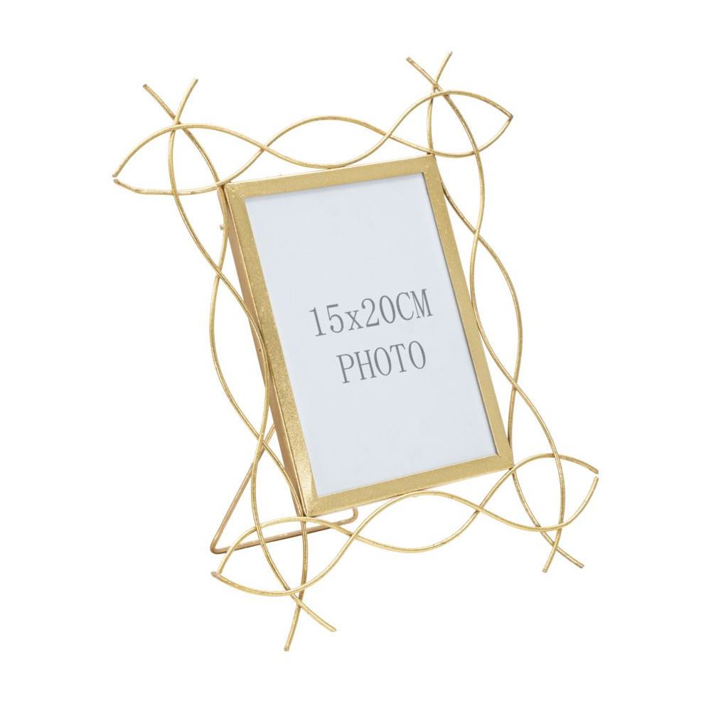 Elegante cornice portafoto in metallo dorato. Il design morbido e le linee sinuose regalano un tocco di eleganza ad ogni ricordo.