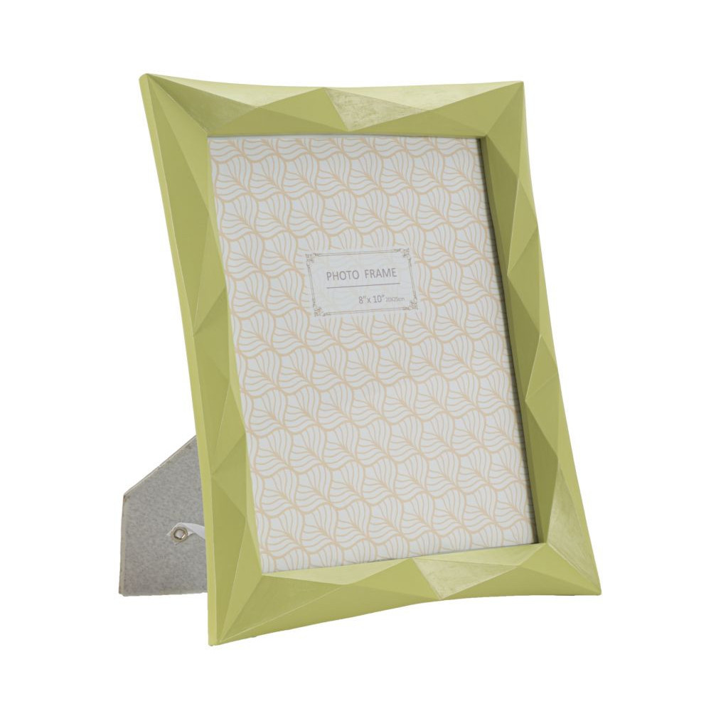 Cornice rettangolare da appoggio in resina verde dal design semplice e geometrico. Può essere posizionata sia in orizzontale che in verticale. Dimensioni foto cm 20x25.