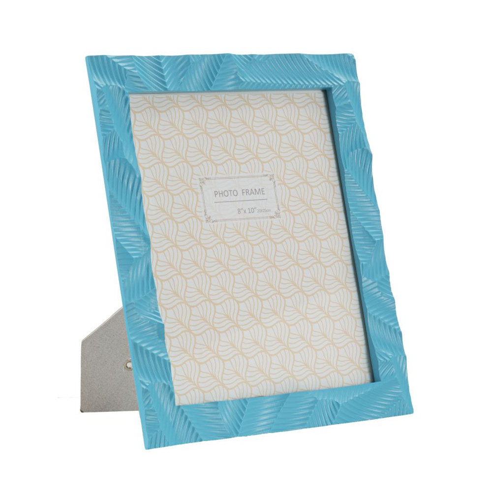 Cornice rettangolare da appoggio in resina celeste dal design semplice e geometrico. Può essere posizionata sia in orizzontale che in verticale. Dimensioni foto cm 20x25.