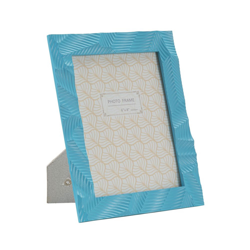 Cornice rettangolare da appoggio in resina celeste dal design semplice e geometrico. Può essere posizionata sia in orizzontale che in verticale. Dimensioni foto cm 15x20.