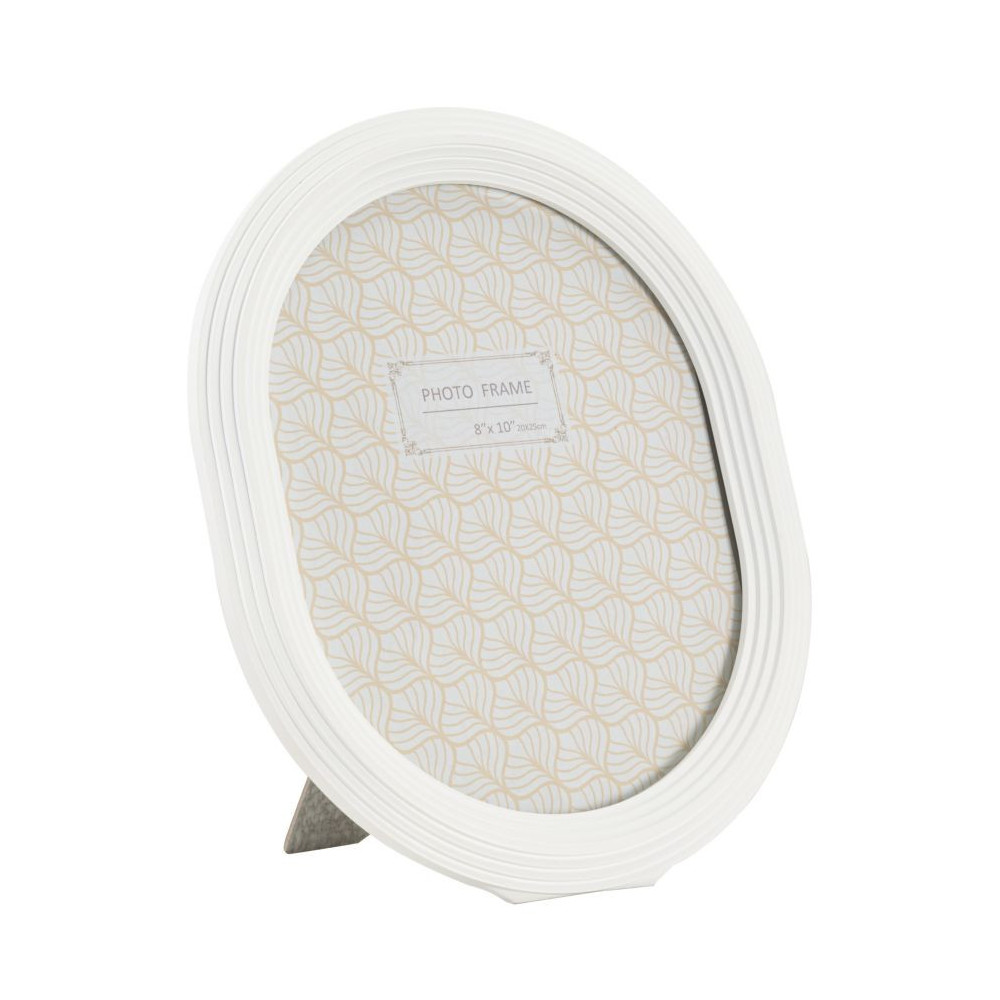 Cornice ovale da appoggio in resina bianca dal design semplice e lineare. Dimensioni foto cm 20x25.
