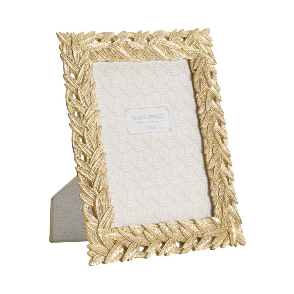 Cornice rettangolare da appoggio in resina dal design composto da un intreccio di foglie. Può essere posizionata sia in orizzontale che in verticale. Dimensioni foto cm 15x20.