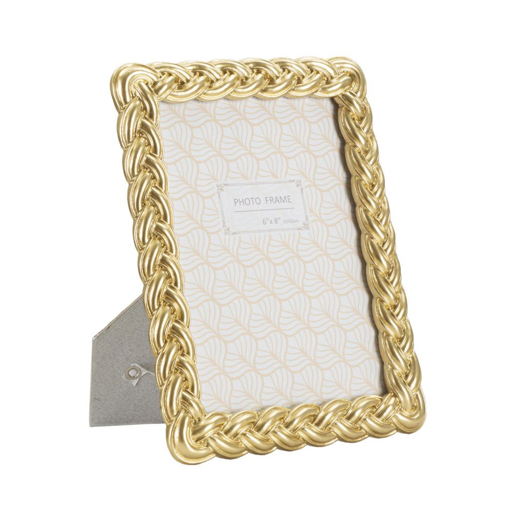 Cornice rettangolare da appoggio in resina dal design formato da un nastro intrecciato. Può essere posizionata sia in orizzontale che in verticale. Dimensioni foto cm 15x20.