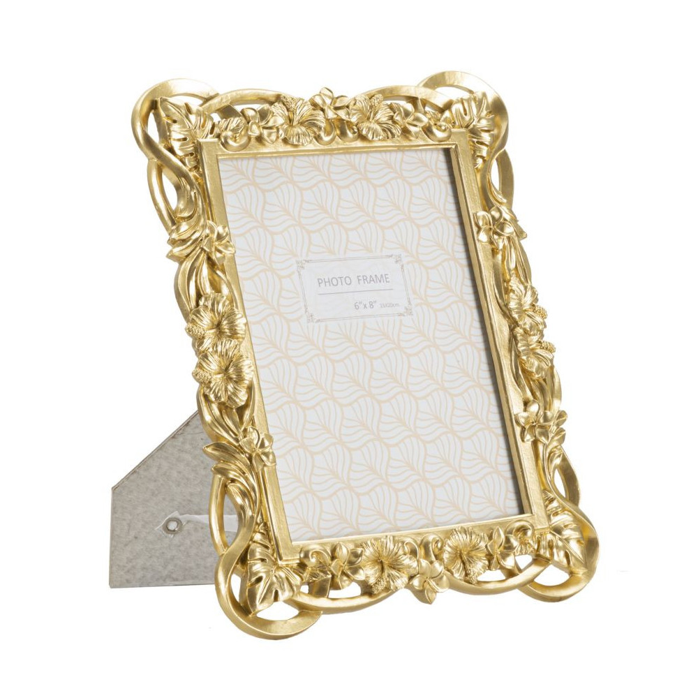 Cornice rettangolare da appoggio in resina dal design composto da un insieme di fiori e foglie. Può essere posizionata sia in orizzontale che in verticale. Dimensioni foto cm 15x20.