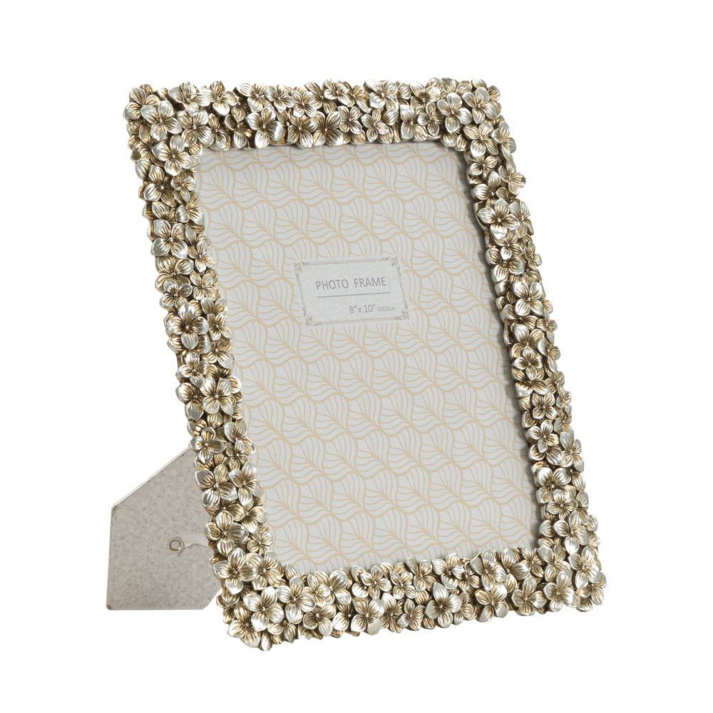 Cornice rettangolare da appoggio in resina dal design composto da un insieme di fiorellini. Può essere posizionata sia in orizzontale che in verticale. Dimensioni foto cm 20x25.