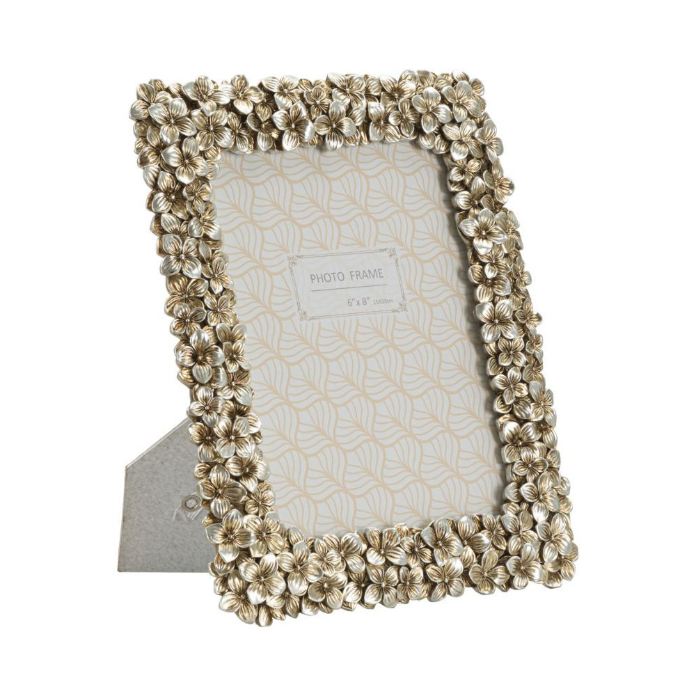 Cornice rettangolare da appoggio in resina dal design composto da un insieme di fiorellini. Può essere posizionata sia in orizzontale che in verticale. Dimensioni foto cm 15x20.