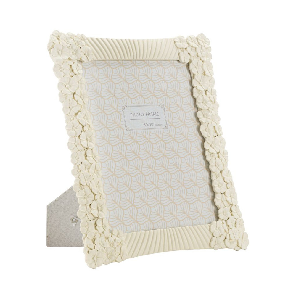 Cornice rettangolare da appoggio in resina dalle linee morbide e impreziosita da un insieme di fiorellini. Può essere posizionata sia in orizzontale che in verticale. Dimensioni foto cm 20x25.