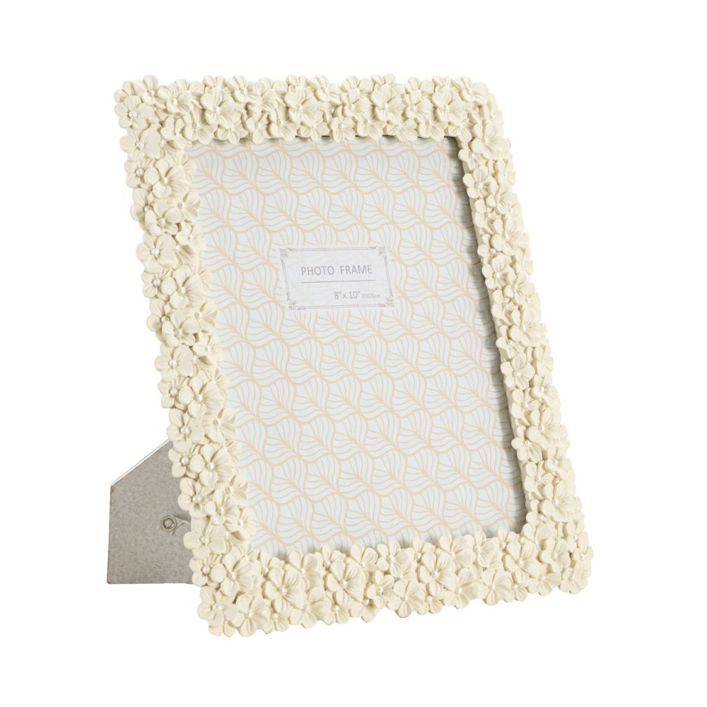 Cornice rettangolare da appoggio in resina realizzata da un insieme di fiorellini. Può essere posizionata sia in orizzontale che in verticale. Dimensioni foto cm 20x25.