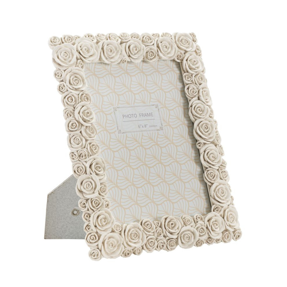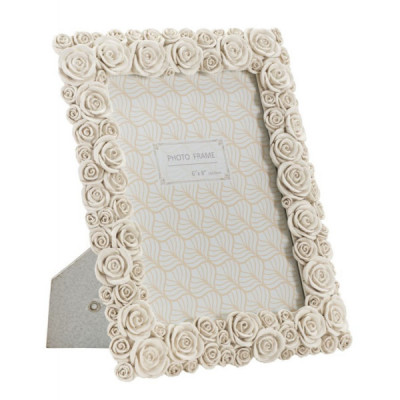 Cornice rettangolare da appoggio in resina realizzata da un insieme di roselline. Può essere posizionata sia in orizzontale che in verticale. Dimensioni foto cm 15x20.