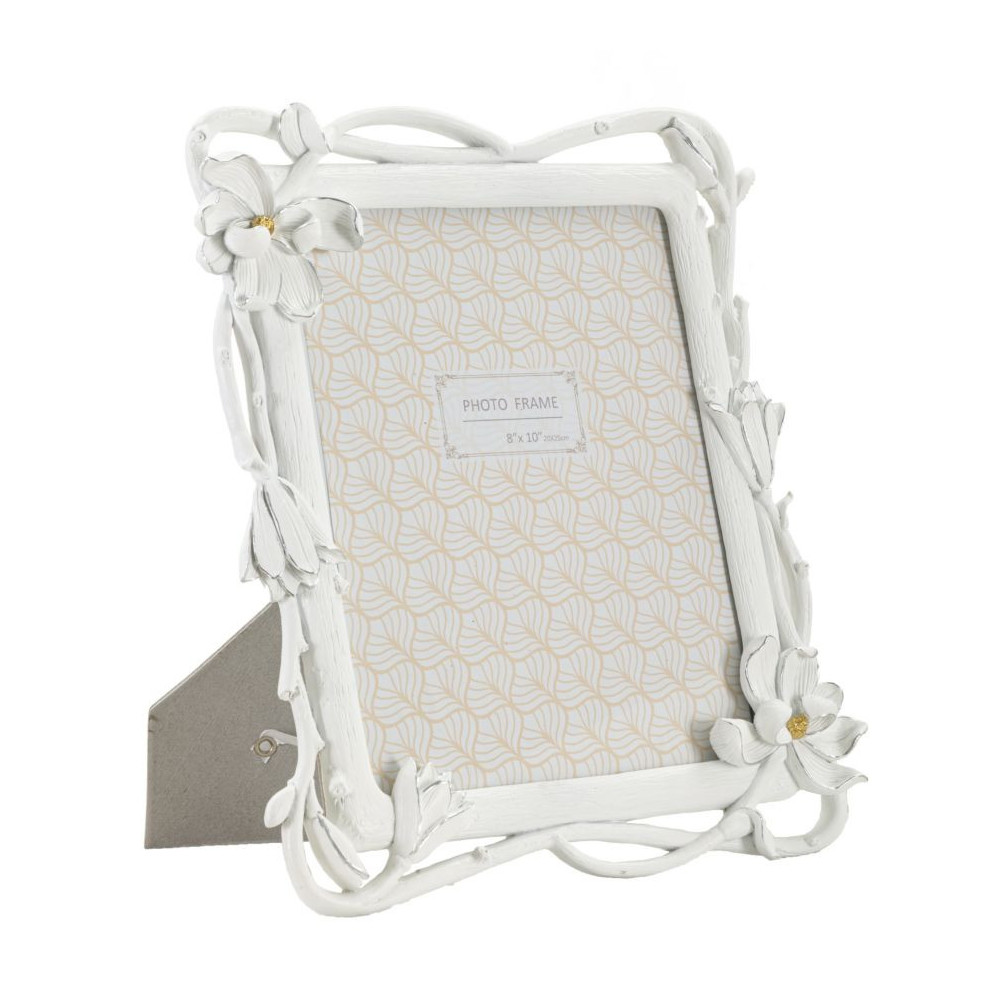 Cornice rettangolare da appoggio in resina dalle linee morbide realizzate da un intreccio di fiori. Può essere posizionata sia in orizzontale che in verticale. Dimensioni foto cm 20x25.