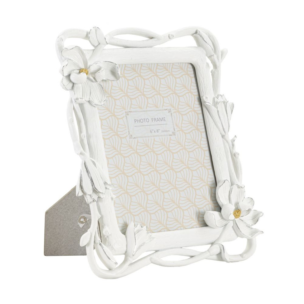 Cornice rettangolare da appoggio in resina dalle linee morbide realizzate da un intreccio di fiori. Può essere posizionata sia in orizzontale che in verticale. Dimensioni foto cm 15x20.
