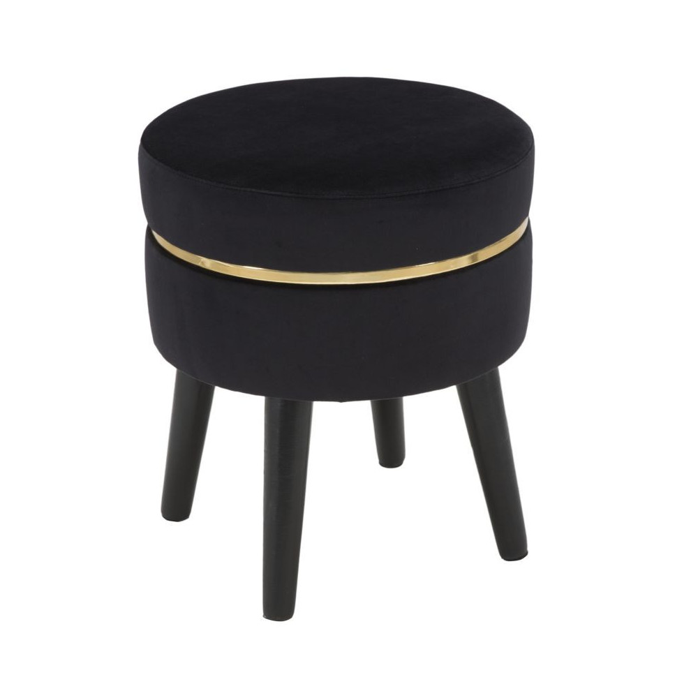 Sgabello in legno e velluto nero con fascia in oro. Il velluto è il tessuto per eccellenza dello stile retro glam. Sofisticato e accogliente, simboleggia un lusso delicato e vintage. Imbottiti che ricordano gli anni '20 ed i romanzi di Fitzgerald.