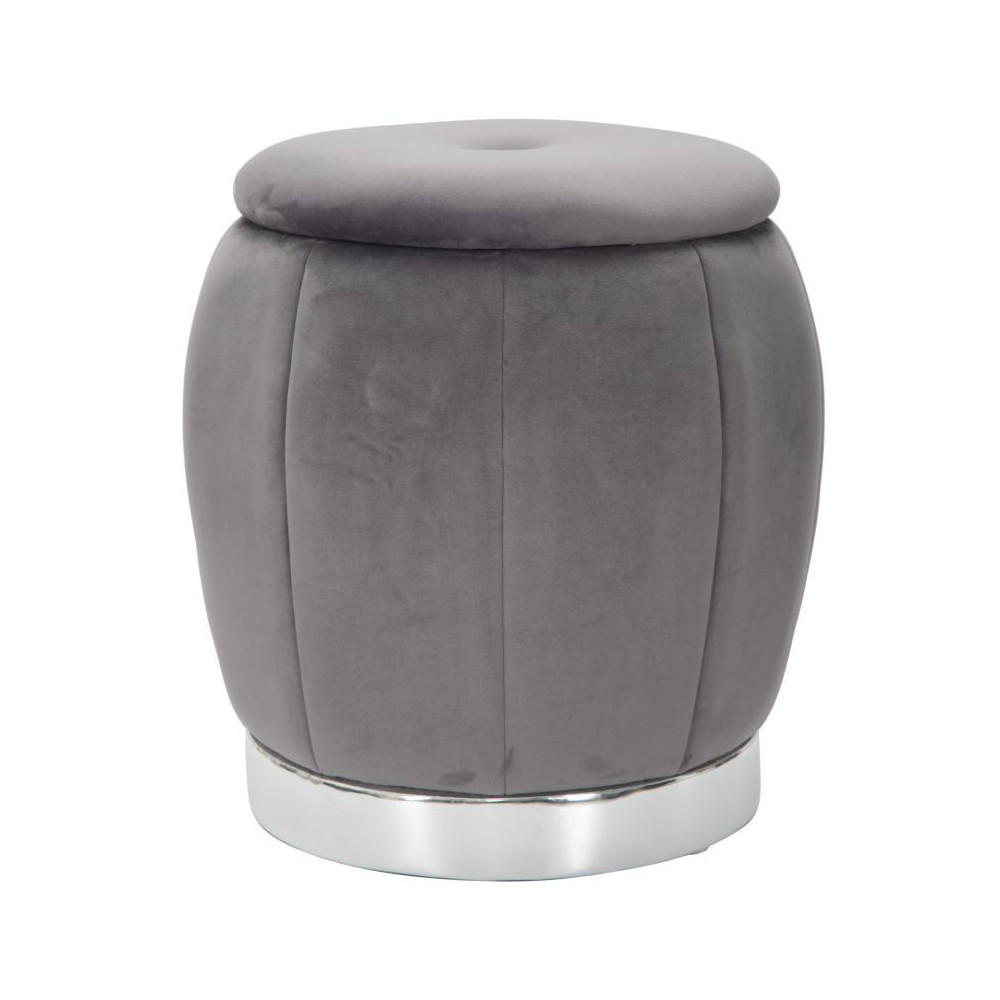 Pouf contenitore in legno e velluto grigio. Sedute dalla finitura argento che si ispirano ai camerini delle grandi dive di Hollywood. Ideali da collocare in camera da letto o in salotto per sentirsi delle star.