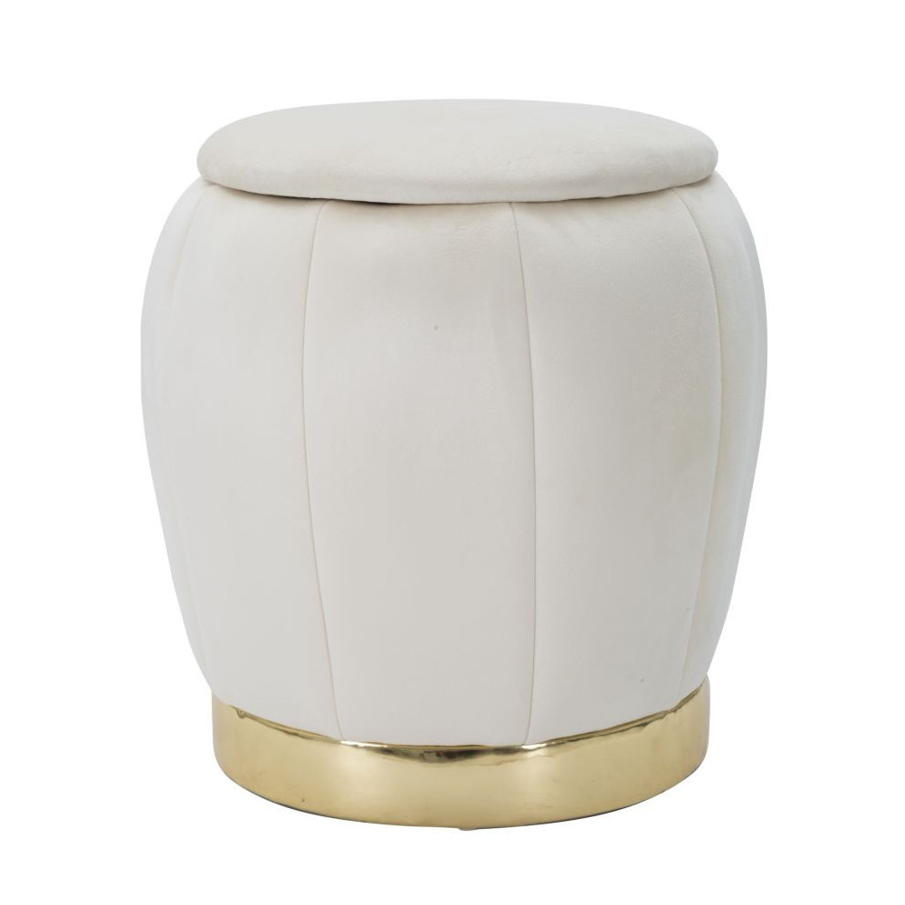 Pouf contenitore in legno e velluto crema. Sedute dalla finitura dorata che si ispirano ai camerini delle grandi dive di Hollywood. Ideali da collocare in camera da letto o in salotto per sentirsi delle star.