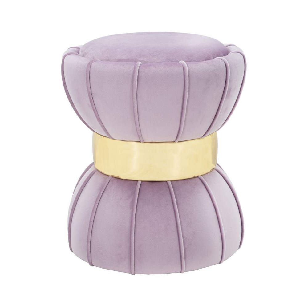 Sgabello rotondo imbottito in velluto sintetico con un elegante fascia deccorativa dorata centrale. La forma ricorda una clessidra.