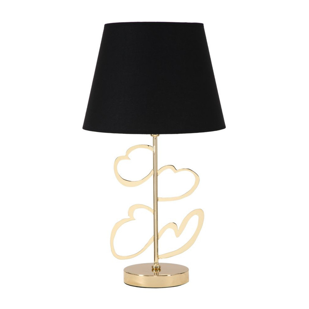 Lampada da tavolo in metallo dorato con paralume in tessuto nero dal design ipnotico. Lo stile glam combina dettagli chic e stravaganti. Lampade da tavolo e da terra che si fanno notare per l'abbinamento tra l'oro e colori accesi o colori più dark come l'ardesia e il nero.