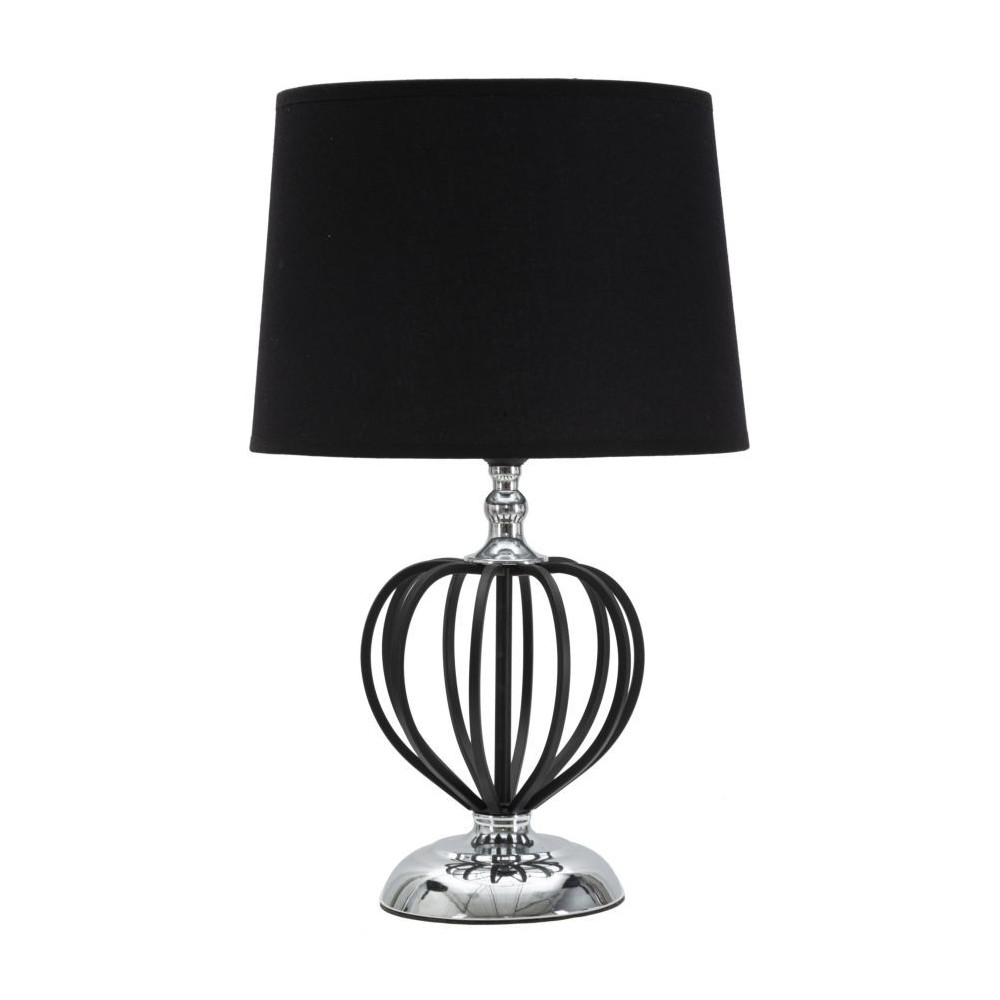 Elegante lampada da tavolo in stile glam in metallo con decorazioni metalliche nere e paralume in tessuto nero. Il design lineare e morbido si adatta ad ogni tipo di arredo.